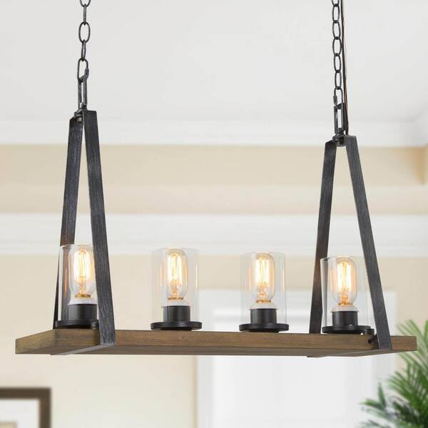 LNC Farmhouse Wood Island Chandelier 4-Light Brushed Black Linear ...
