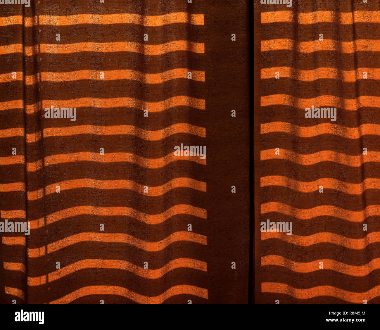 Linear shadows from the horizontal blinds falling in parallel lines on ...