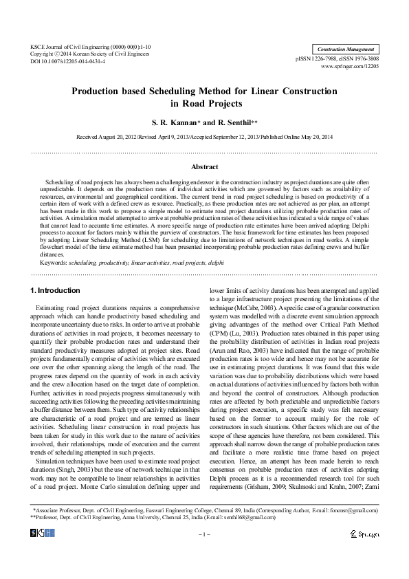 (PDF) Production Rate Determination for Linear Construction Projects ...