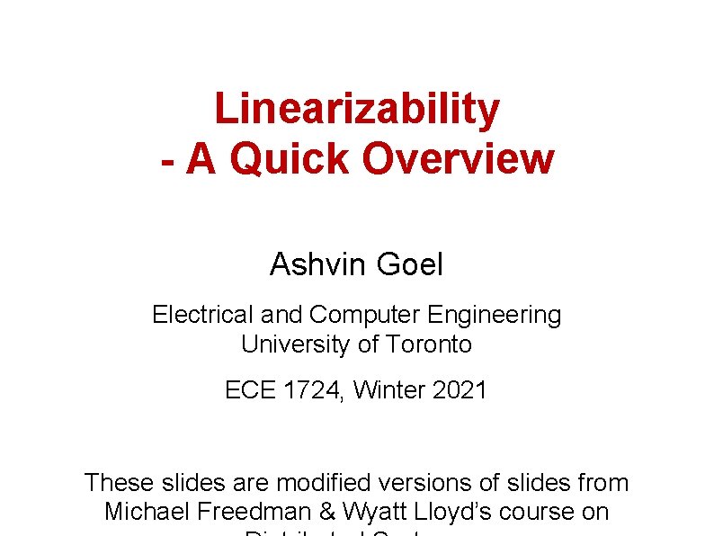Linearizability A Quick Overview Ashvin Goel Electrical and