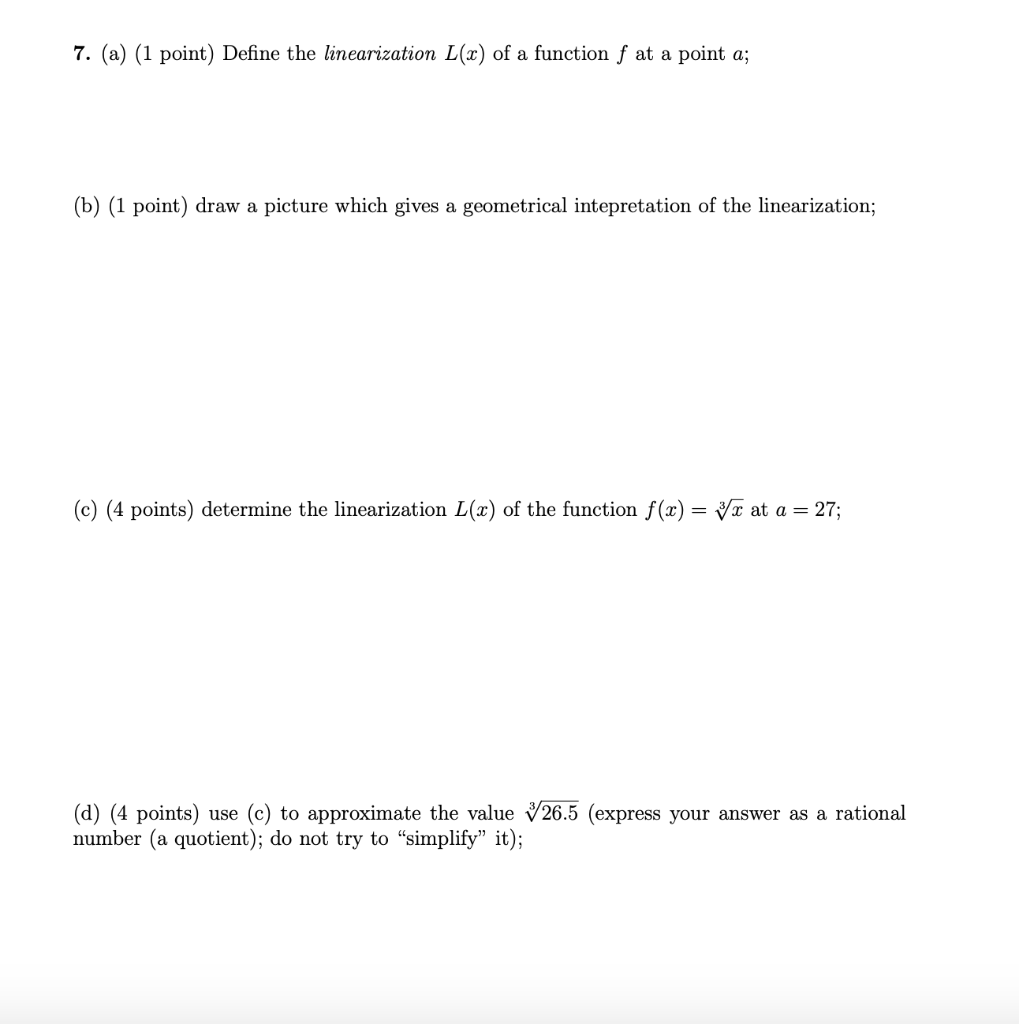 Solved 7. (a) (1 point) Define the linearization L(x) of a | Chegg.com