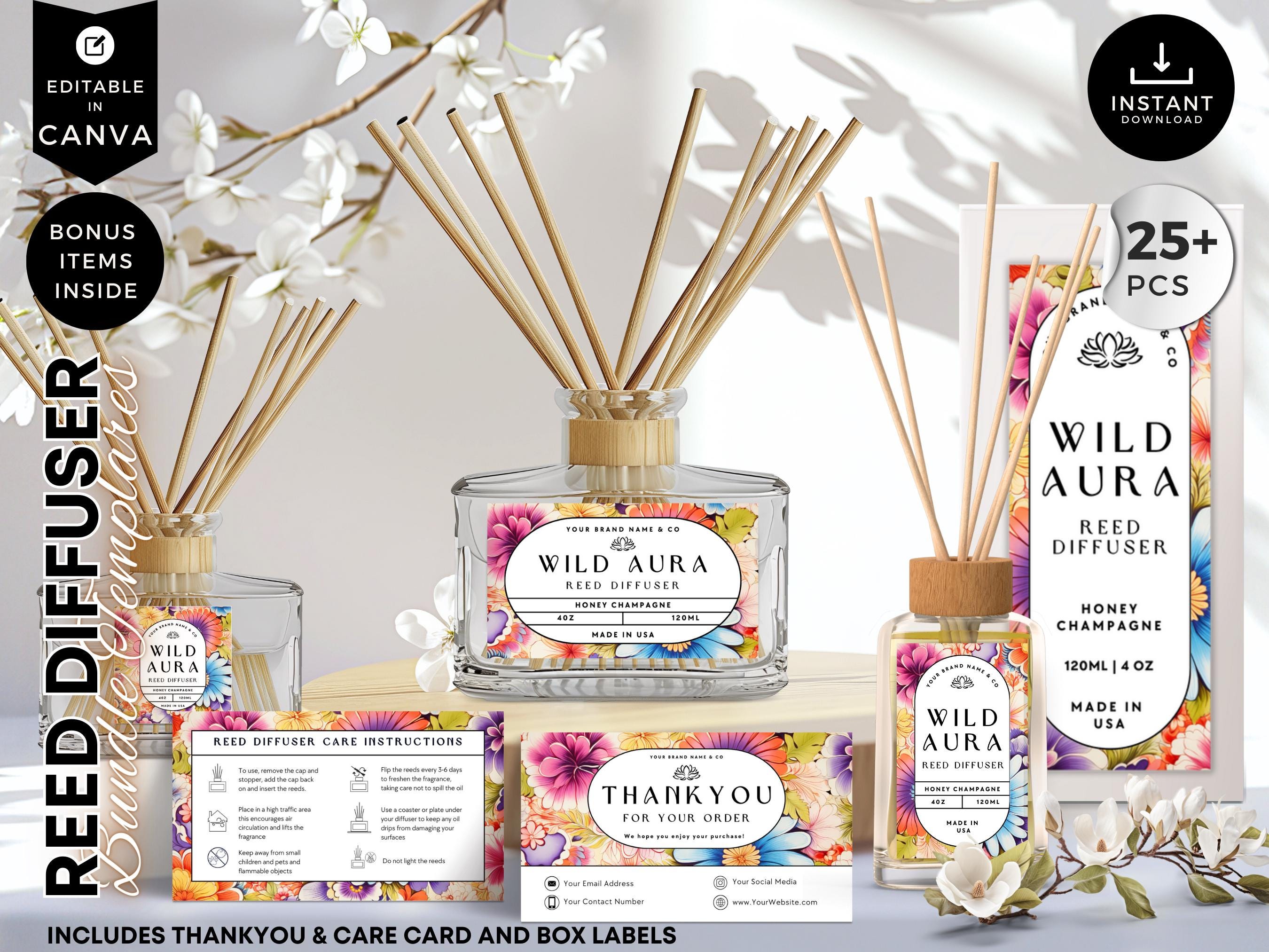 Reed Diffuser Label Template, Editable Product Label Template, DIY ...