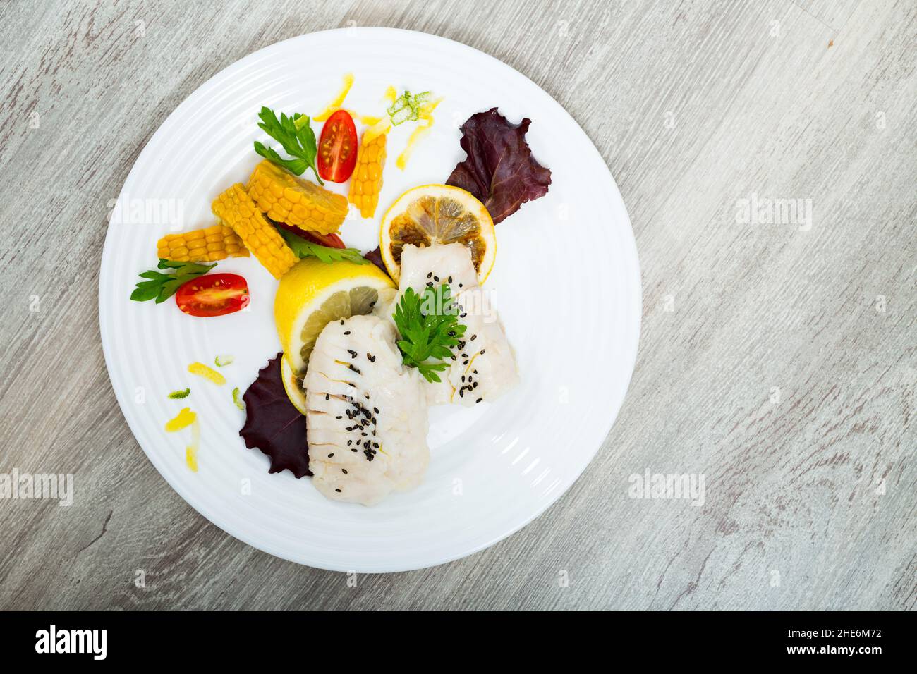 Cod Fish Filets With Herbs Salad Stock Photo - Alamy