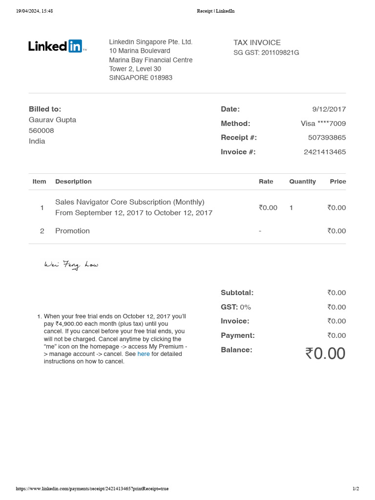 Receipt - LinkedIn | PDF | Receipt | Invoice