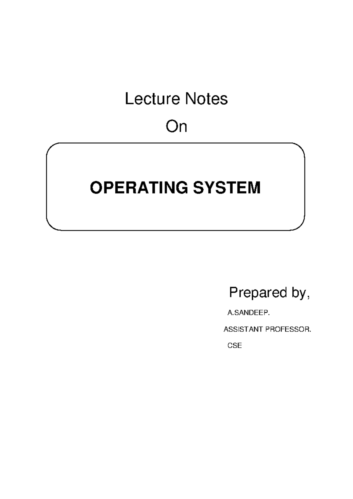 Lecture Notes on CSE Operating Systems: Process & Memory Management ...