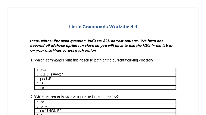 Linux Commands Worksheet 1: Practice Questions and Instructions - Studocu