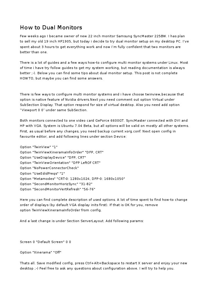 Dual Monitor Linux | PDF | Computer Monitor | Personal Computers
