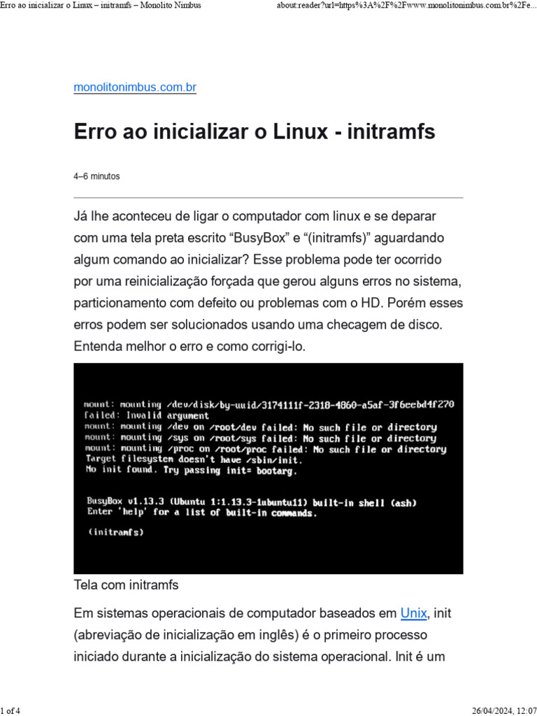 Erro Ao Inicializar o Linux - Initramfs - Monolito Nimbus | PDF ...