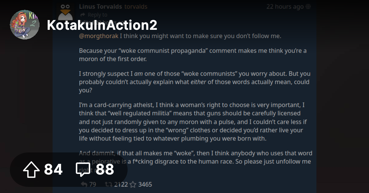 Linux inventor Linus Torvalds tells conservative to "make sure you don ...