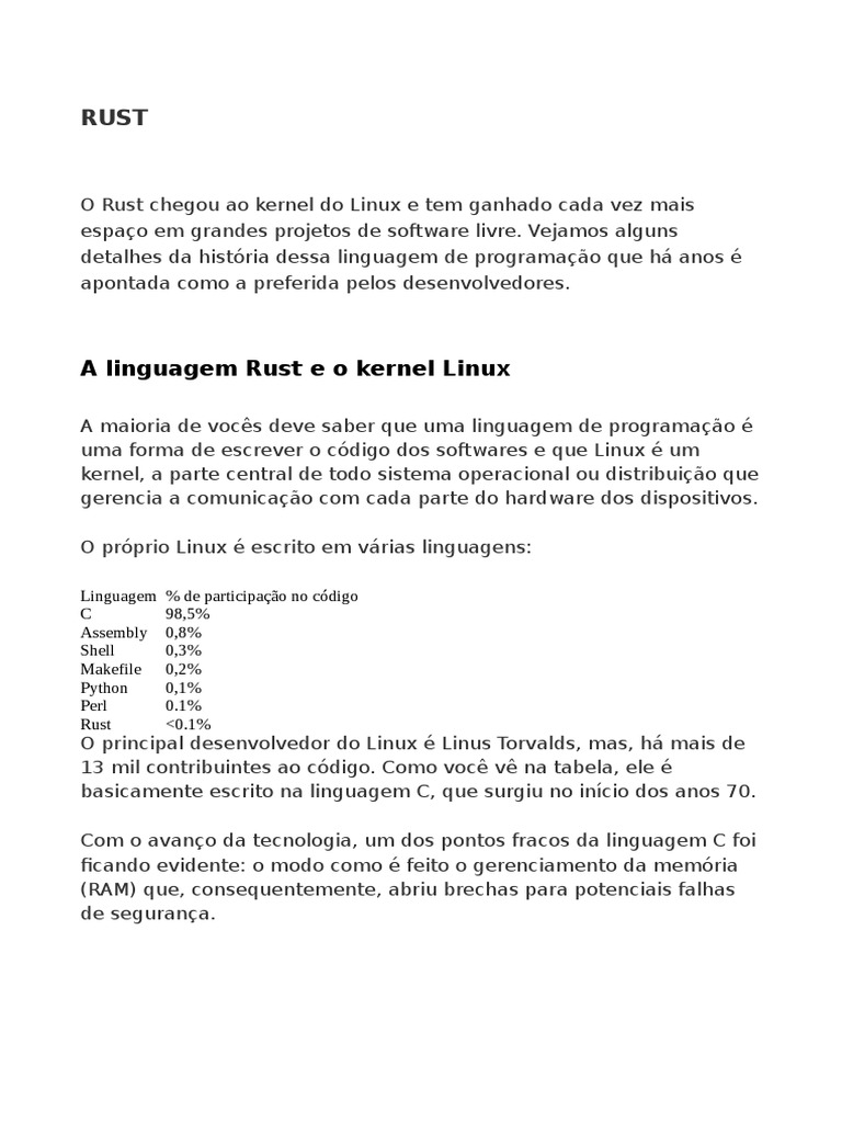 RUST | PDF | Linux | Kernel (sistema operacional)
