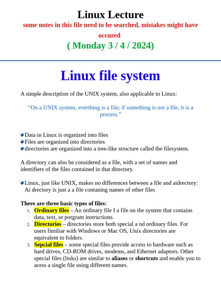 Linux System Fundamentals-Lecture Handout - Docsity