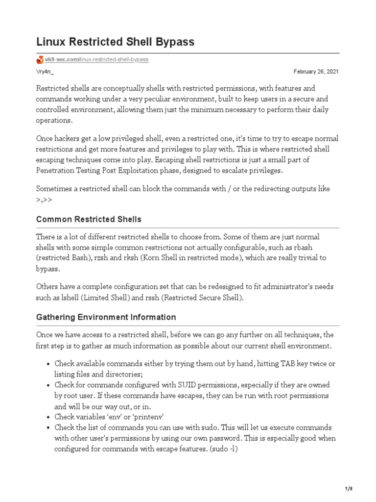2021-02-26 - Linux Restricted Shell Bypass | PDF