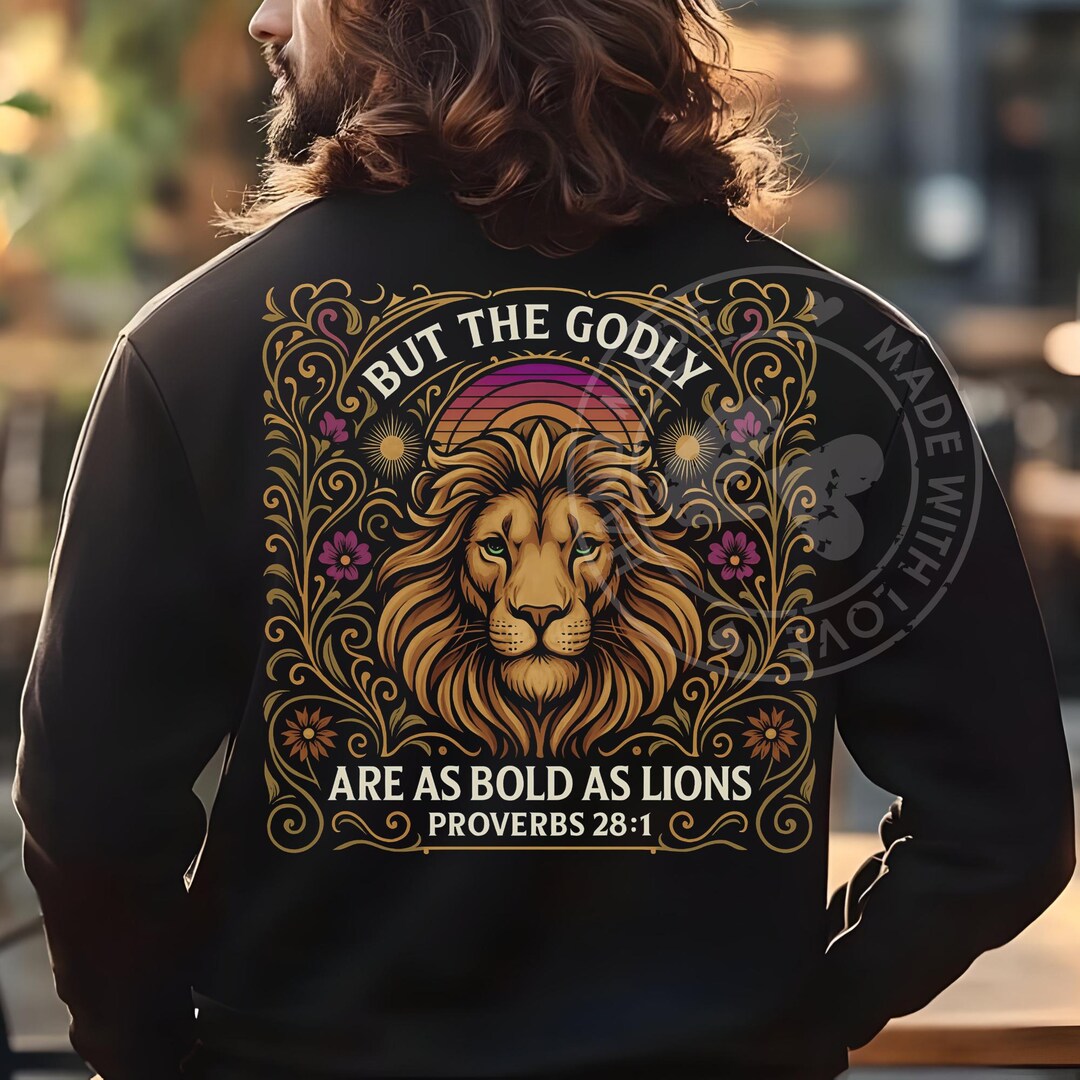 Retro Christian Lion Bible Verse PNG, Proverbs 28:1 Scripture Design ...