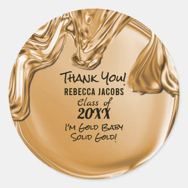 Gold Liquid Metal Graduation Party Classic Round Sticker | Zazzle