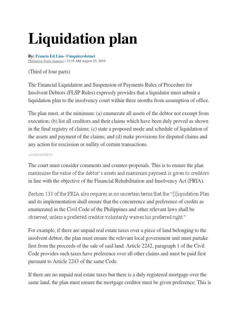 Liquidation Plan | PDF | Mortgage Law | Liquidation