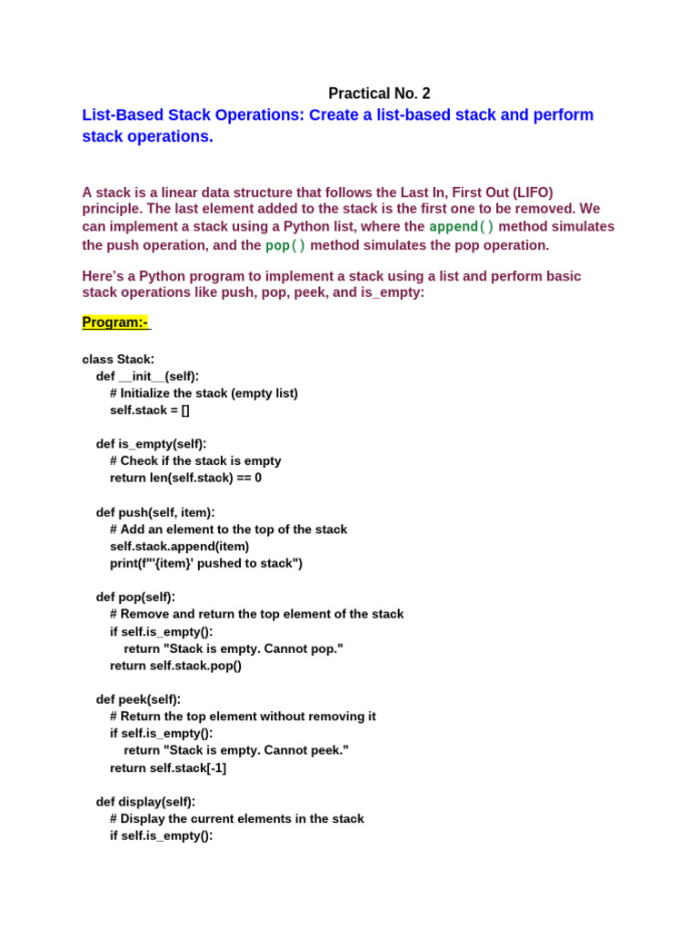 Python List-Based Stack Operations | PDF | Computer Programming ...