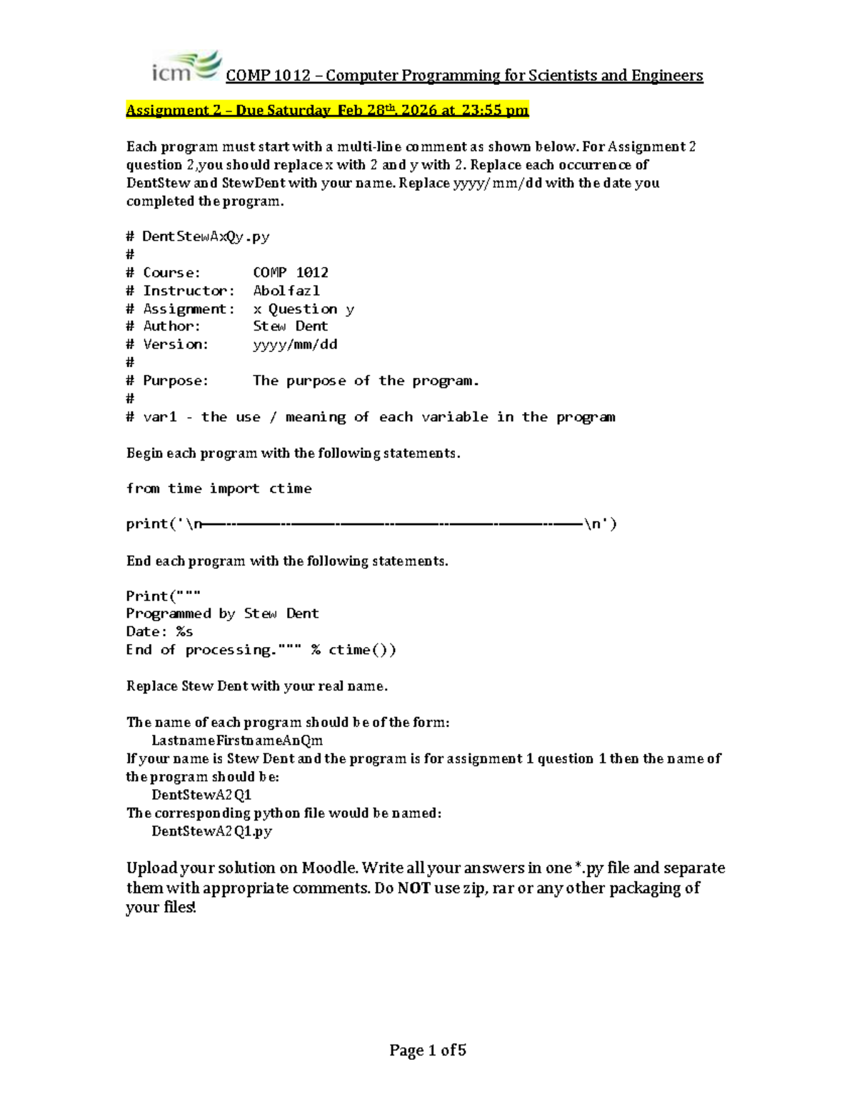 COMP 1012 – Assignment 2: Python Programming Tasks - Studocu