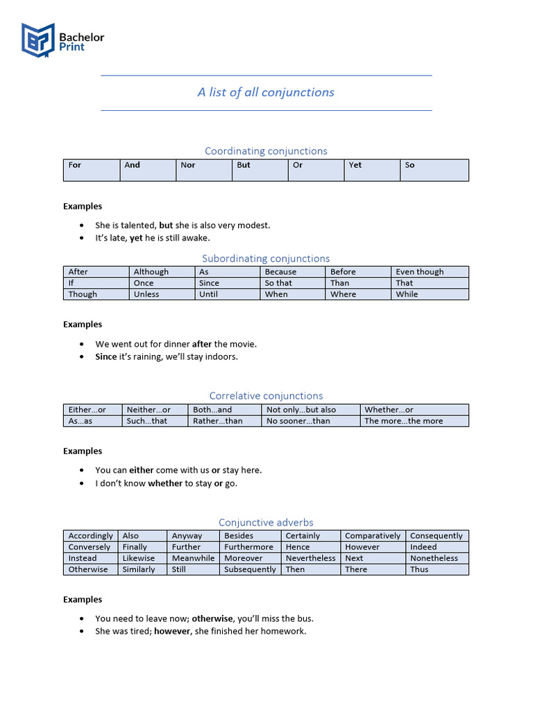 List Of Conjunctions Pdf – Conjunction Examples – MFTZTR