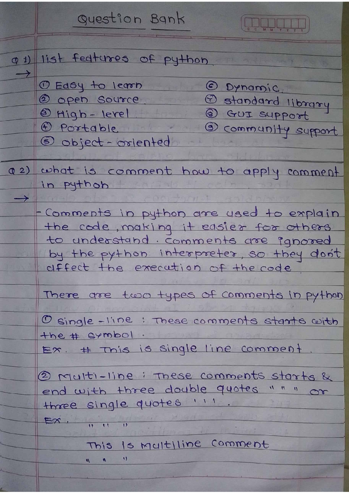 Python question - Question Bank D D M M Q1) list features of python in ...