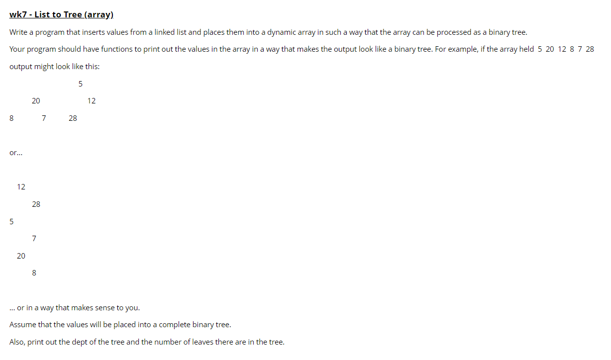 Solved wk7 - List to Tree (array). Write a program that | Chegg.com