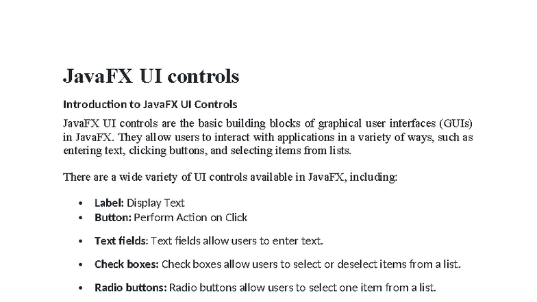 JavaFX UI Controls & Event Handling Overview (CS101) - Studocu