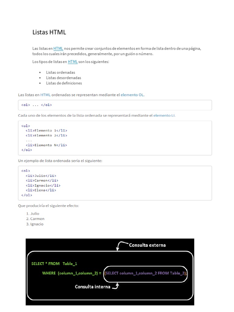 17. Listas anidadas - Tutorial de HTML - Picuino