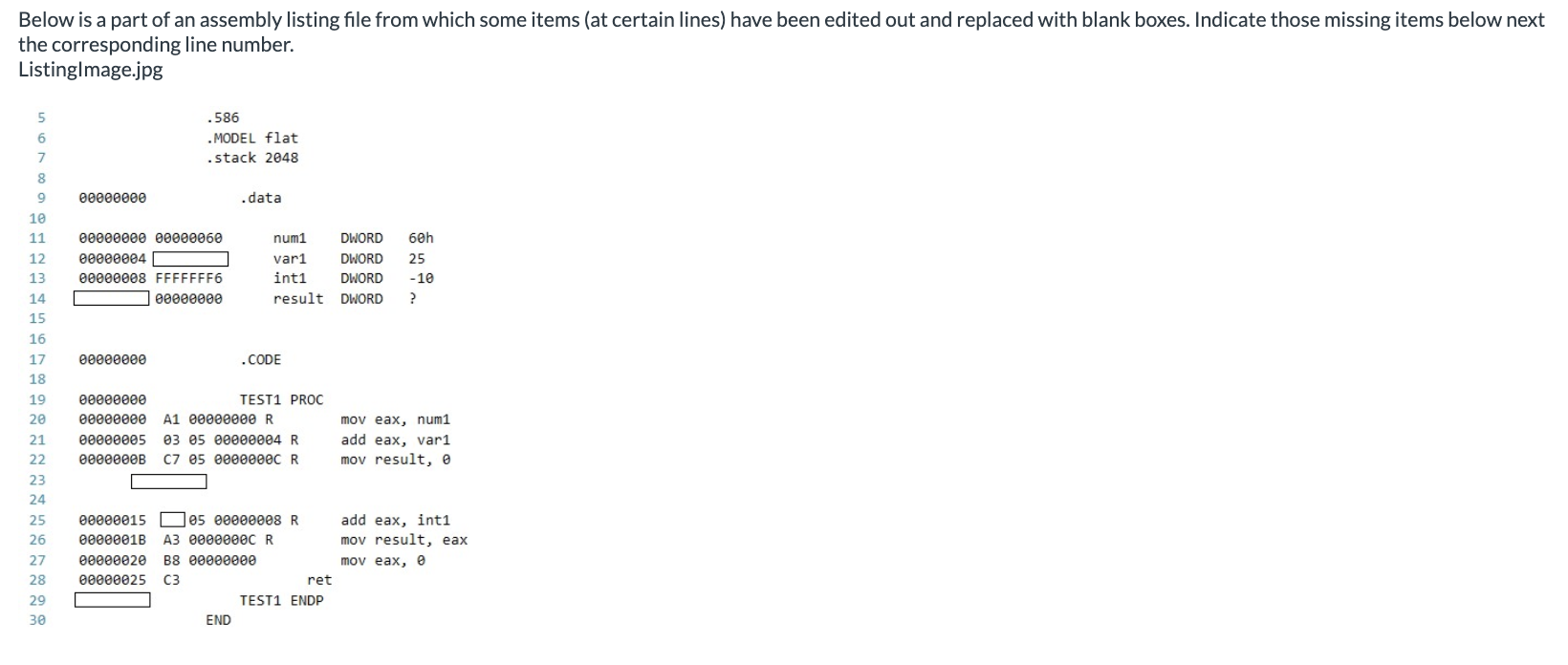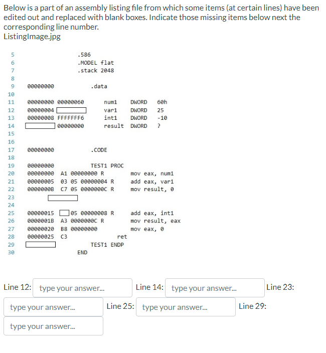 Solved Below is a part of an assembly listing file from | Chegg.com