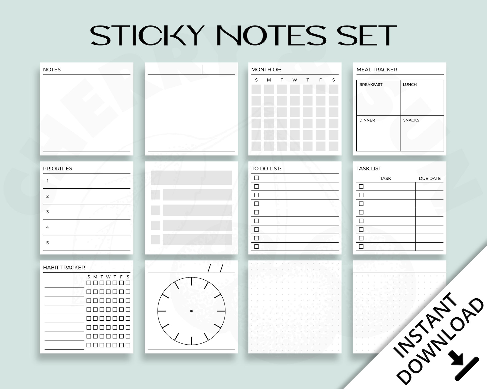 Printable Sticky Notes Bundle: 12 Planner Designs (PDF Download) - Etsy