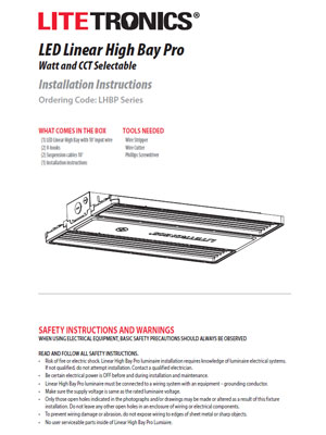 LED Linear High Bay Pro - Installation Instructions - Litetronics