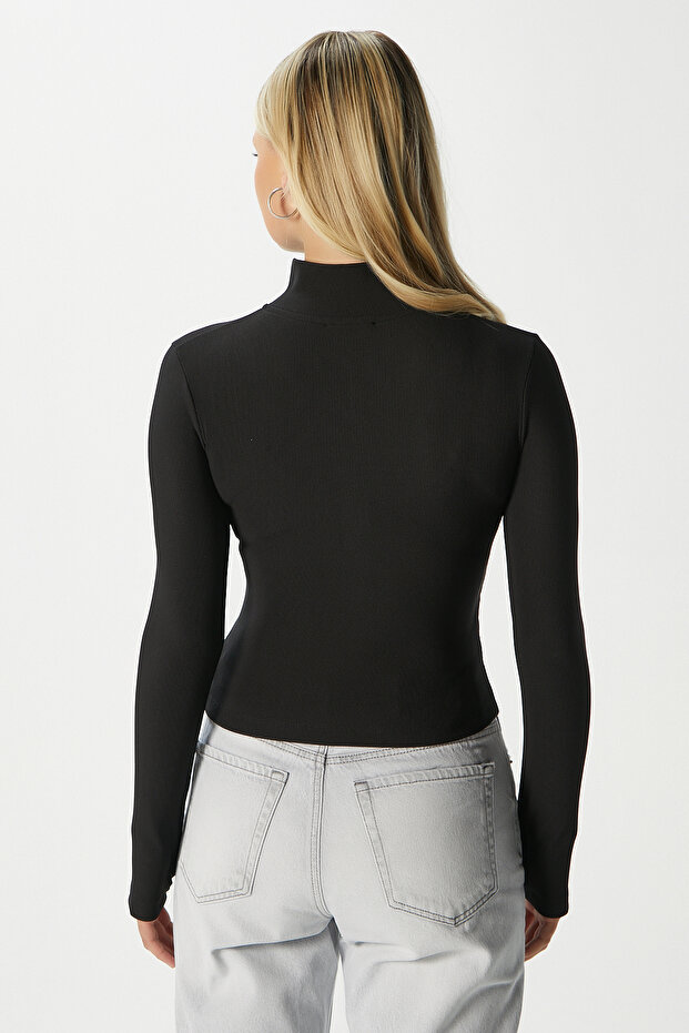 Ritnice Lithe Vucuda Oturan Yarım Fermuarlı Fitilli Siyah Bluz - Fiyatı ...