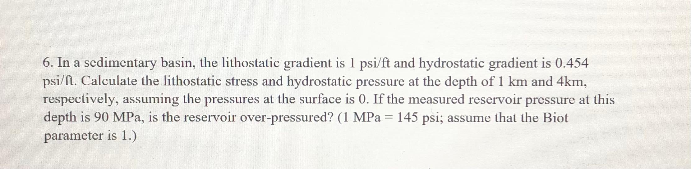 Solved 6. In a sedimentary basin, the lithostatic gradient | Chegg.com