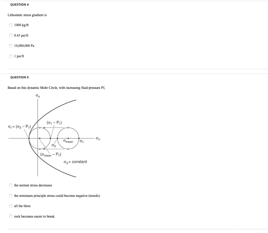 Solved QUESTION 4 Lithostatic stress gradient is 1000 kg/ft | Chegg.com