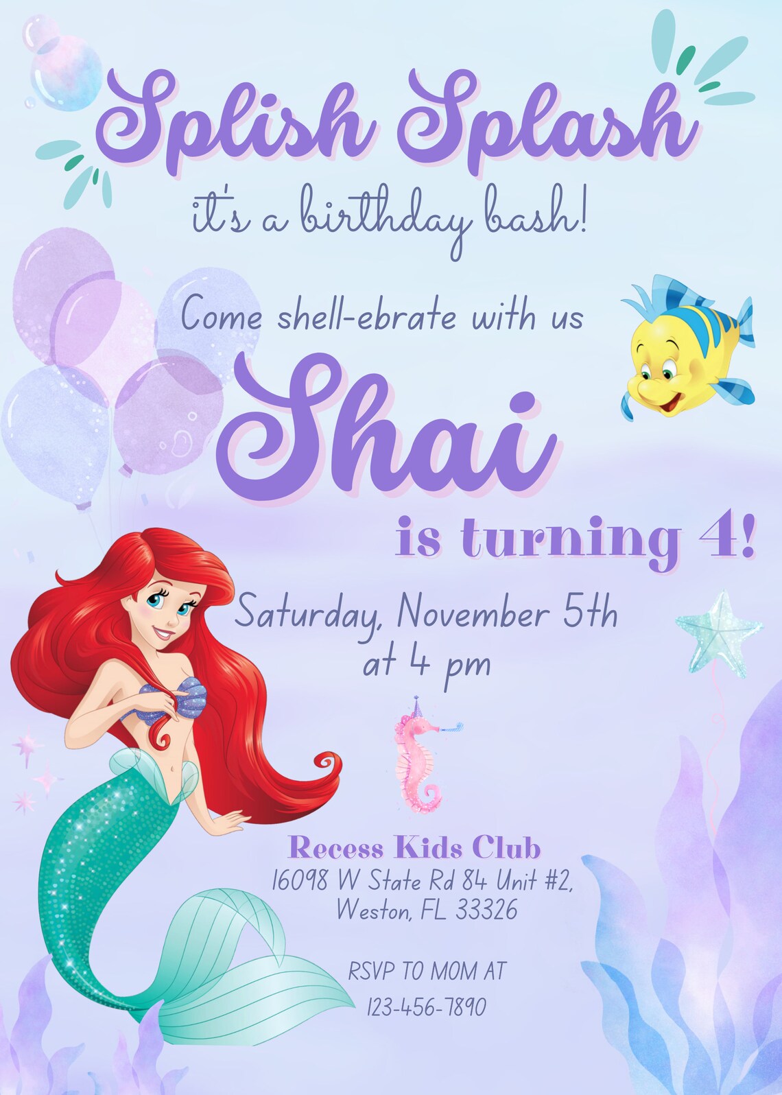 Editable Little Mermaid Invitation, Mermaid Invitation, Little Mermaid ...