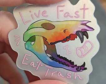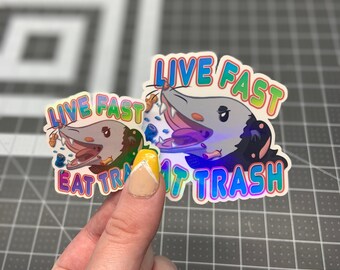 "Live Fast Eat Trash" Sticker for Sale by possum-mood | Redbubble