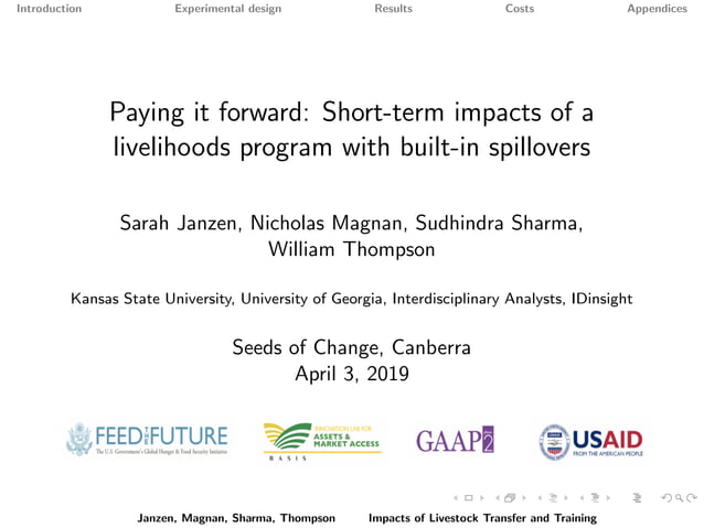 Paying it forward: short-term impacts of a livelihoods program with ...