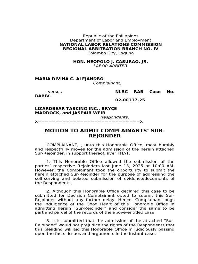06 19 2025 Motion To Admit TASKUS | PDF | Justice | Crime & Violence