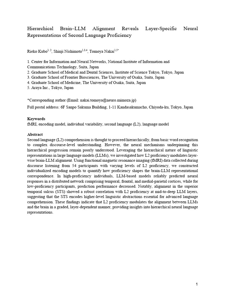 Brain-LLM Alignment L2 Proficiency | PDF | Brain | Functional Magnetic ...