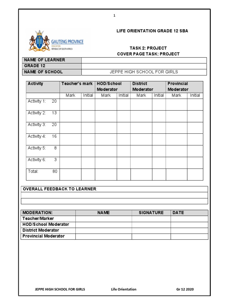 2020-LO-PROJECT-GR10-LG .pdf - LIFE ORIENTATION SCHOOL BASED ASSESSMENT ...
