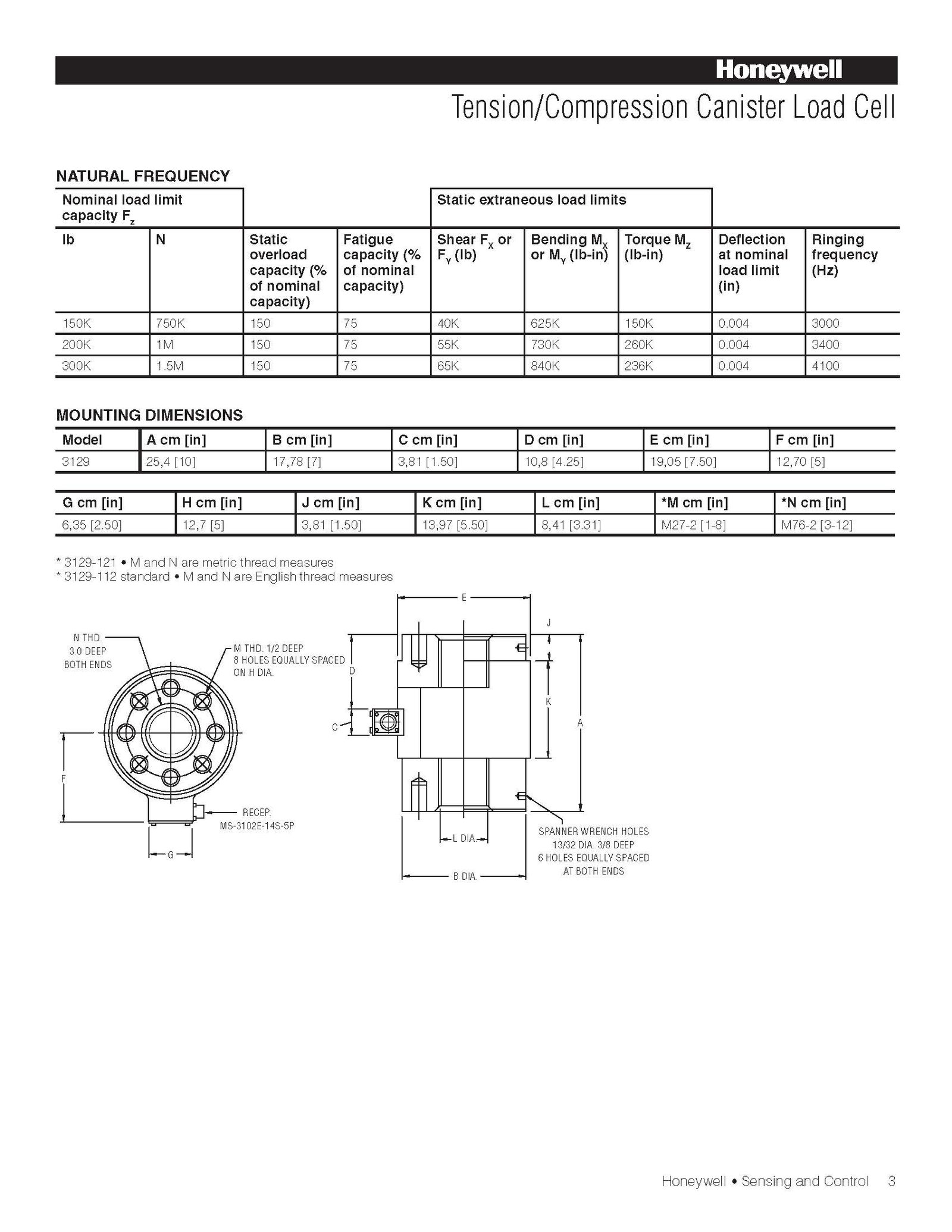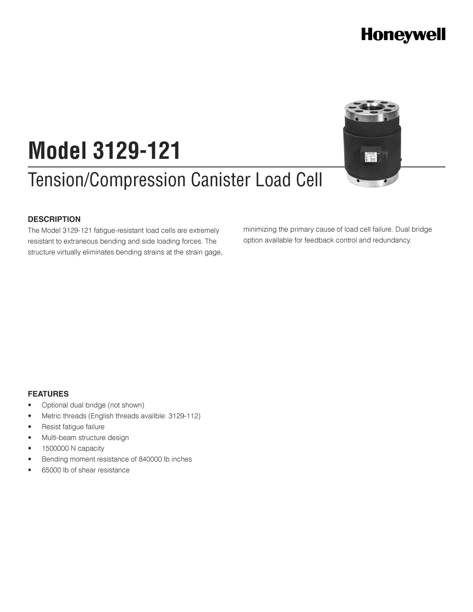 Honeywell / Model 3129 / ension/Compression Canister Load Cell - CAS ...