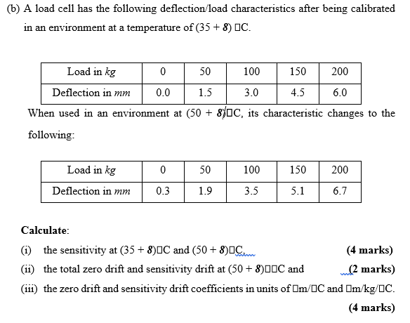 Solved (b) A load cell has the following deflection/load | Chegg.com