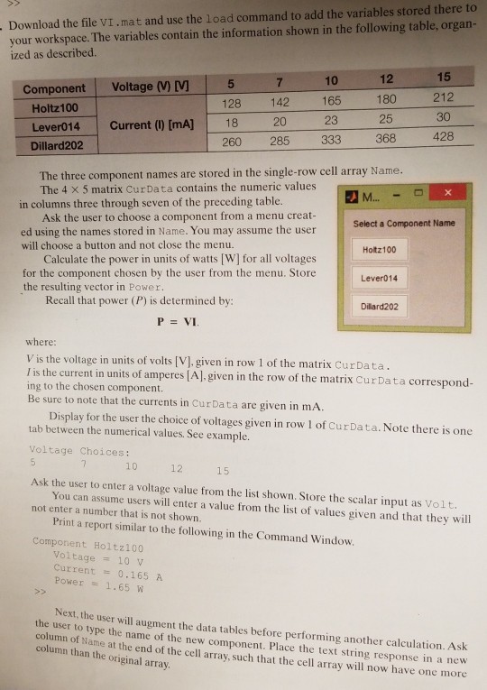 Solved Download the file VI.mat and use the load command to | Chegg.com