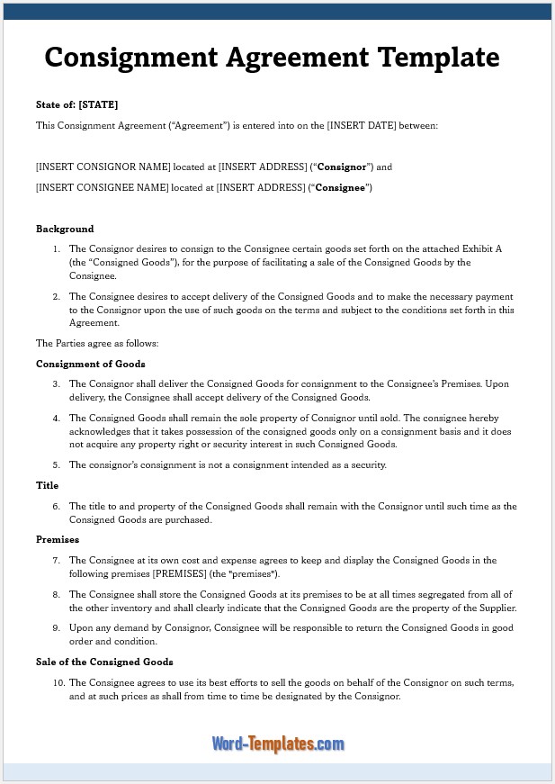 Consignment Agreement Templates - Free Word Templates