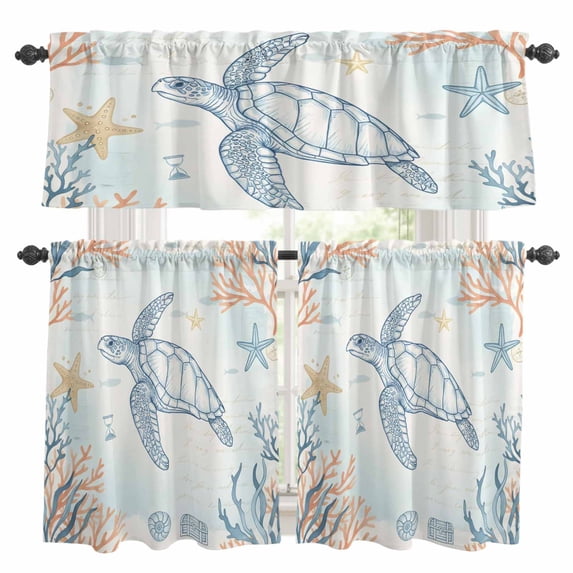 3 Piece Kitchen Curtains and Valances Set Turtle Coastal Cafe Curtains ...