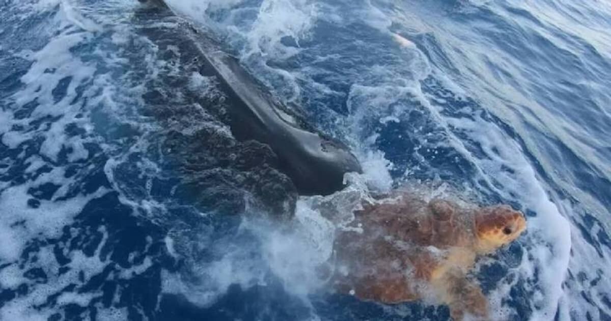 A Shark Stuns Fishermen by Bringing Them a Turtle in Trouble