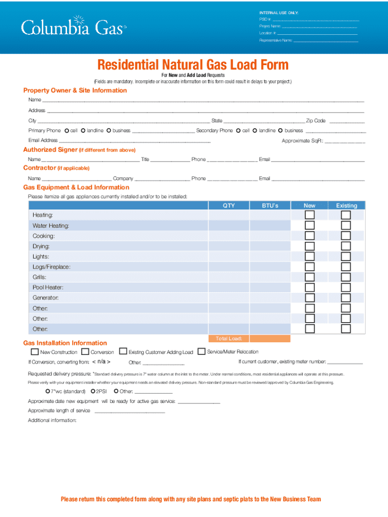 Fillable Online Residential Natural Gas Load Form Fax Email Print ...