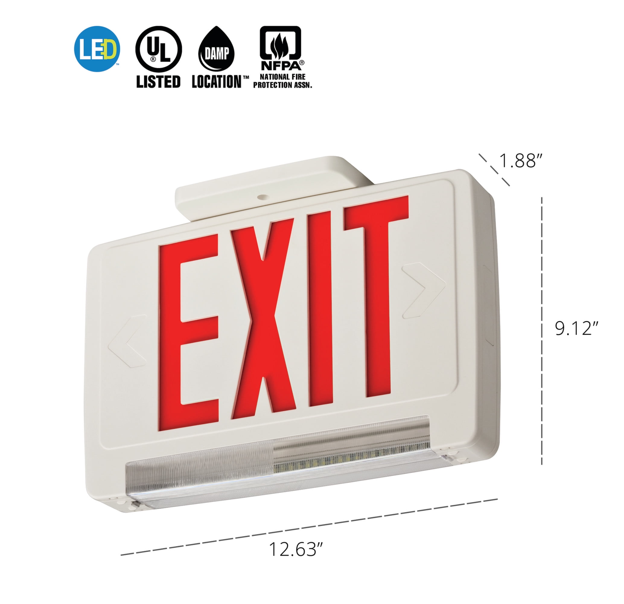 White, LED, Exit Sign with Emergency Lights - 656P32|DYNCSRW12 - Grainger