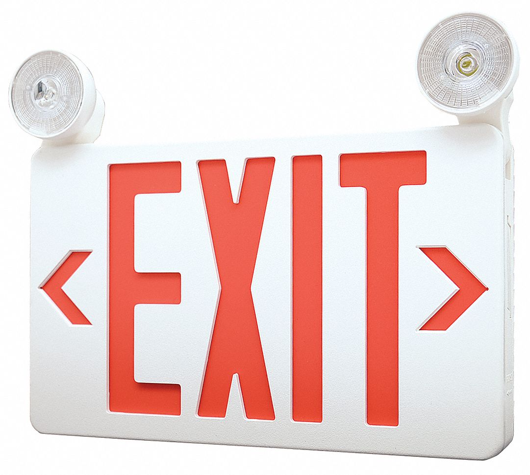 White, 1 or 2 Faces, Exit Sign with Emergency Lights - 6CGL8|6CGL8 ...