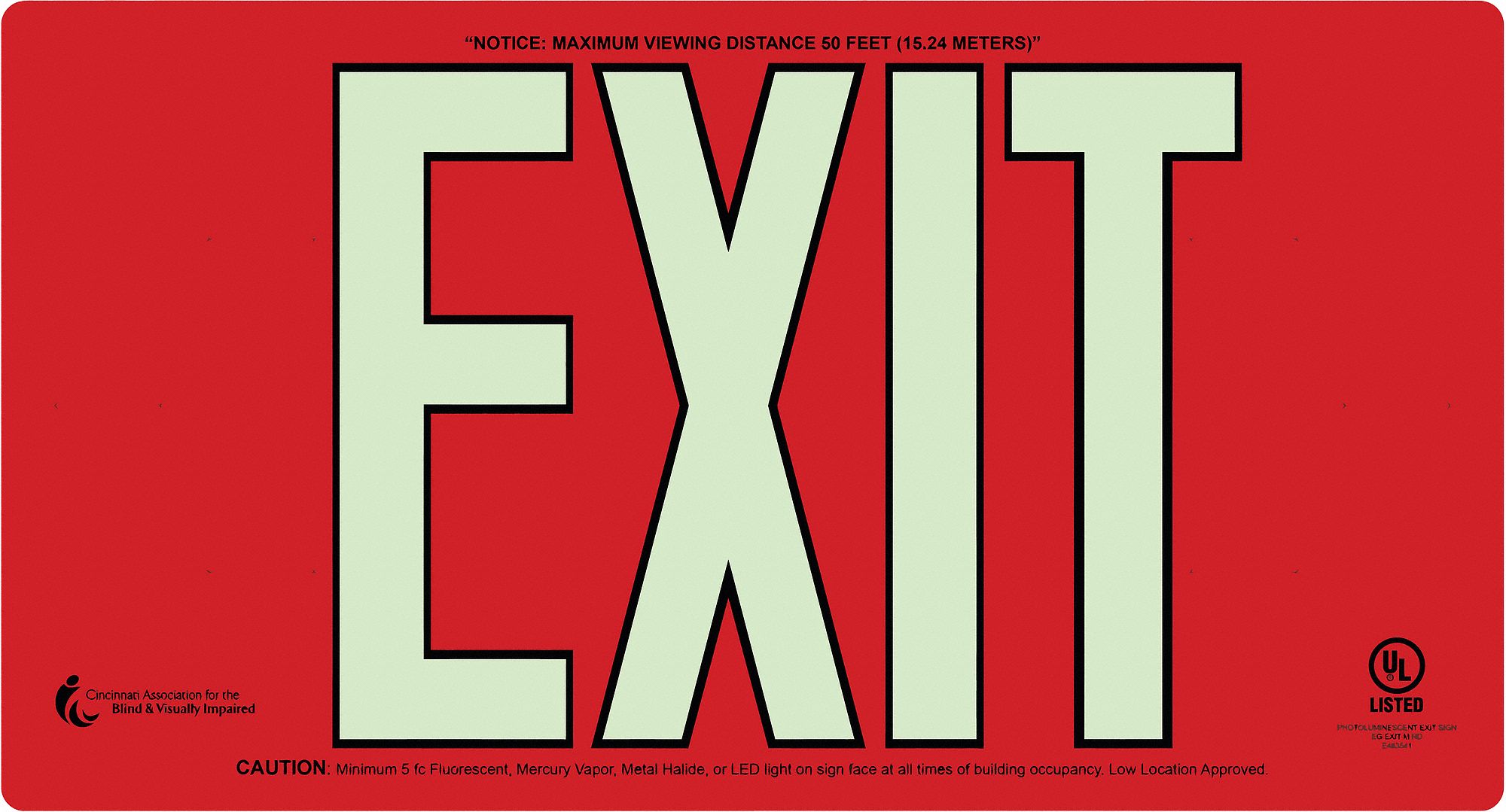 Aluminum, 8 1/2 in x 15 1/4 in Nominal Sign Size, Photoluminescent Exit ...