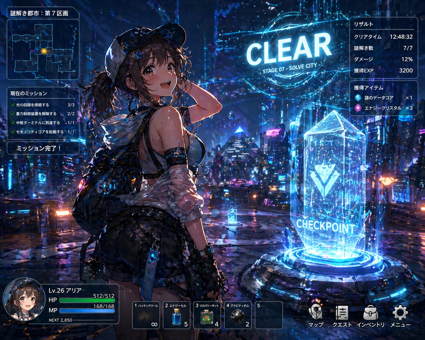 Neon Puzzle Victory! | chichi-pui(ちちぷい)AIイラスト専用の投稿&生成サイト