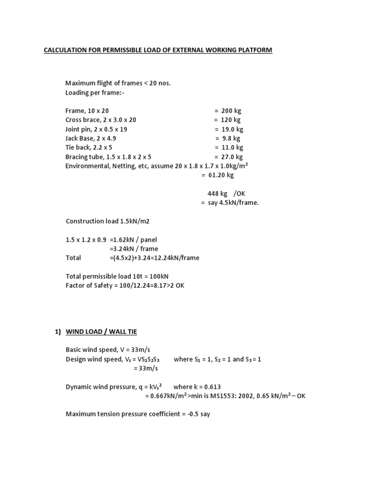 Design Calculation For Raising Plateform | PDF | Scaffolding | Wind Speed